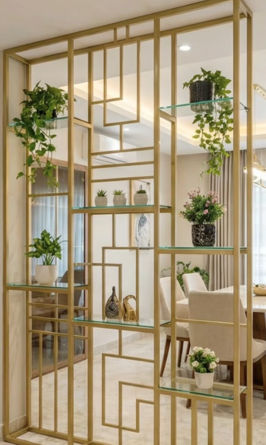 • Built-in Display Shelving: Unlike traditional flat partitions, these screens feature integrated niches or staggered shelving designed to showcase small collectibles, art pieces, or delicate greenery.